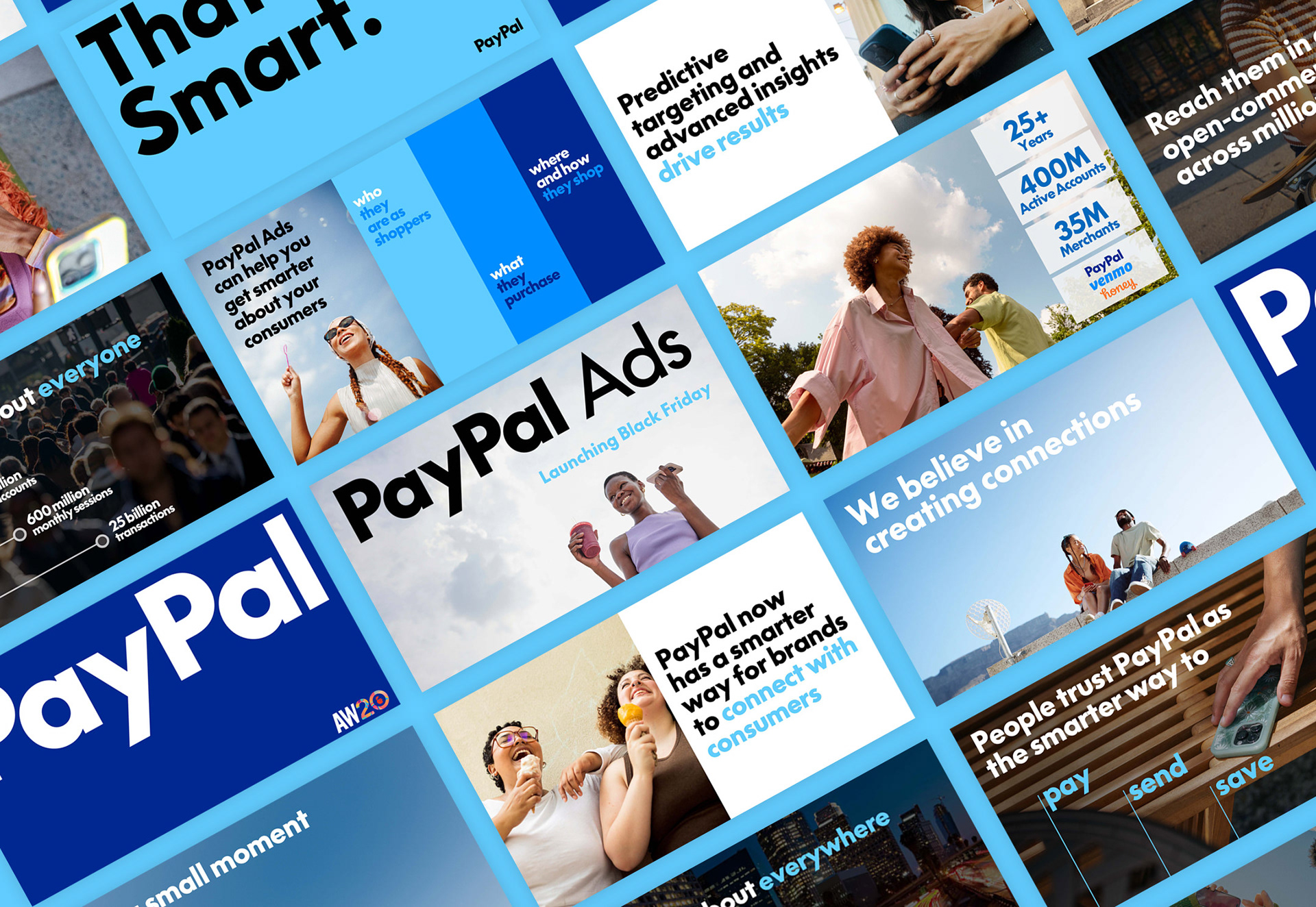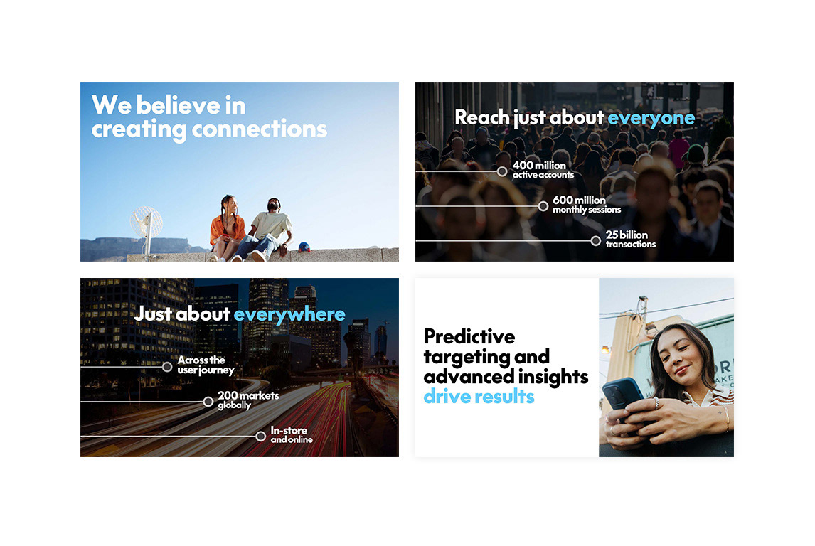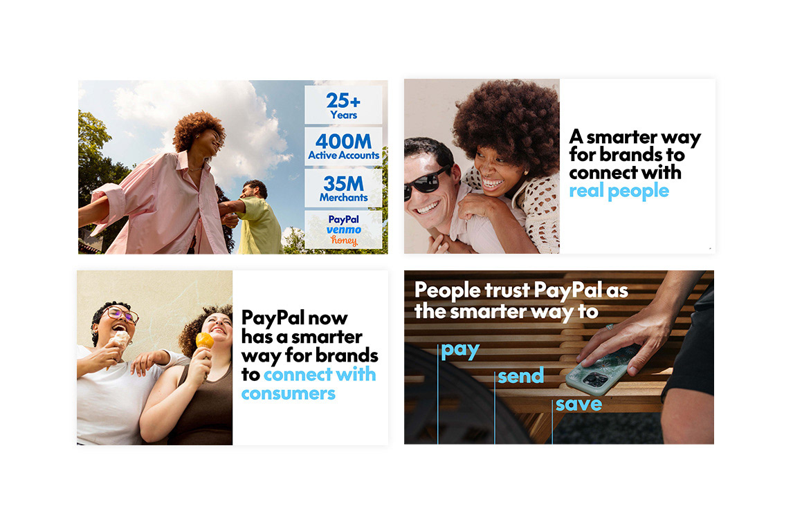 This project was a collaborative brand presentation created for PayPal Ads and delivered live at Adweek in New York in October 2024. As design lead, I helped define the visual direction and led the execution of key slides within a large, cross-functional team, working within PayPal’s established brand guidelines. My contributions focused on layout, typography, and visual storytelling, as well as setting design guardrails to keep the deck cohesive across multiple contributors. Slides shown highlight work I directly designed, with confidential content edited for portfolio use.