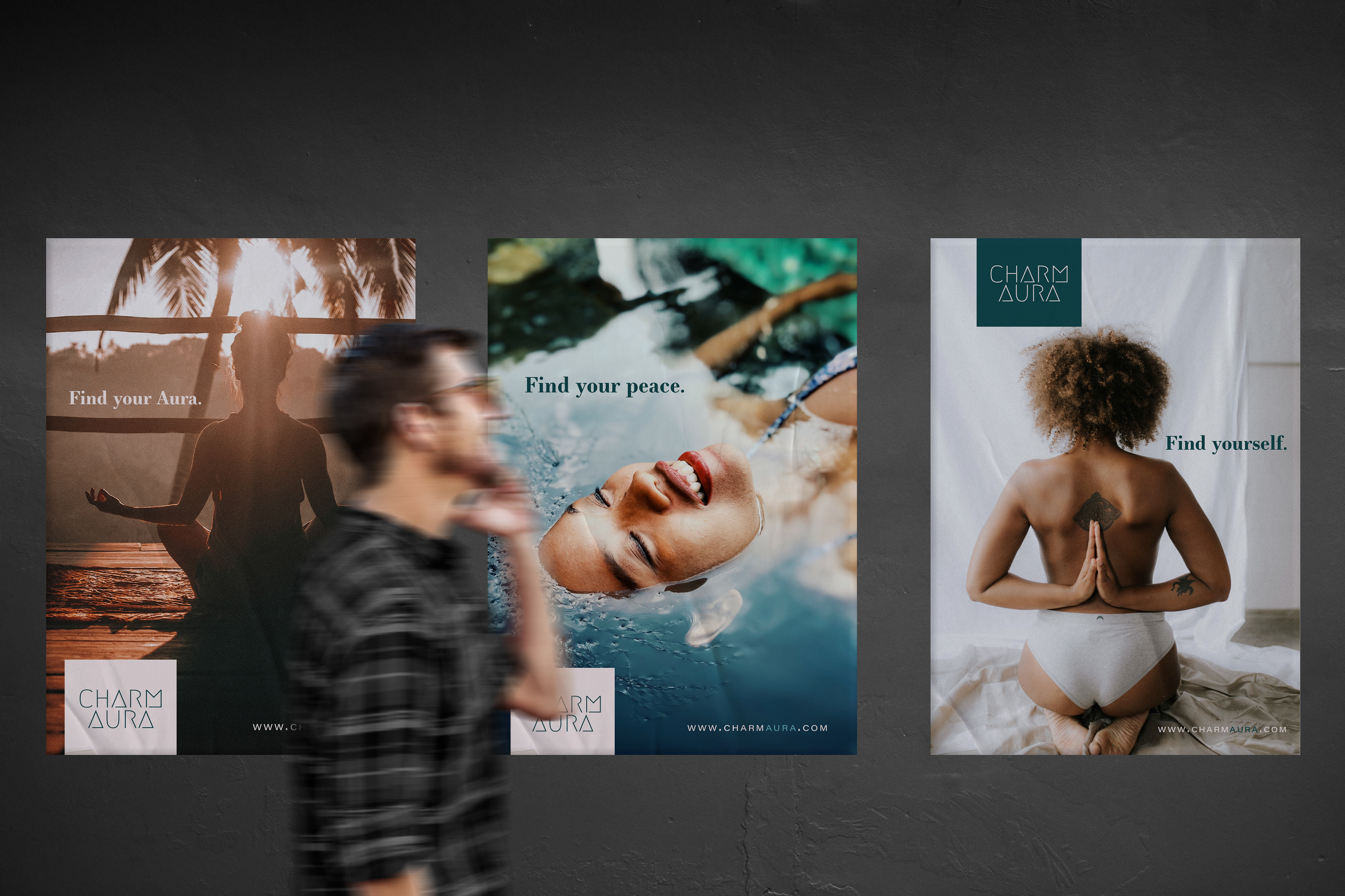 Charm Aura is a wellness brand focused on balance, self-care, and positive energy. I designed the logo, packaging, and promotional materials, including posters, creating a cohesive visual language that conveys calm, approachable sophistication while standing out in a crowded wellness market.